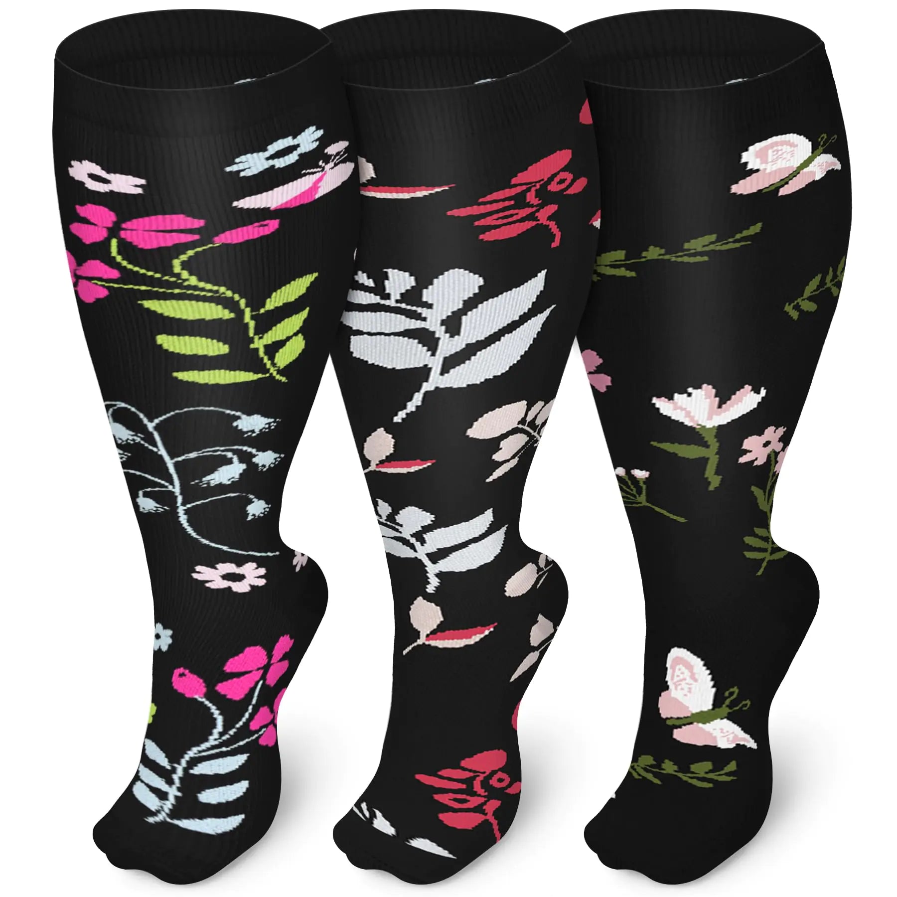 Iseasoo Plus Size Compression Socks for Men and Women-3 pairs Wide Calf 20-30 mmHg Knee High Compression Stockings Support for Circulation,Nurses Running 2XL