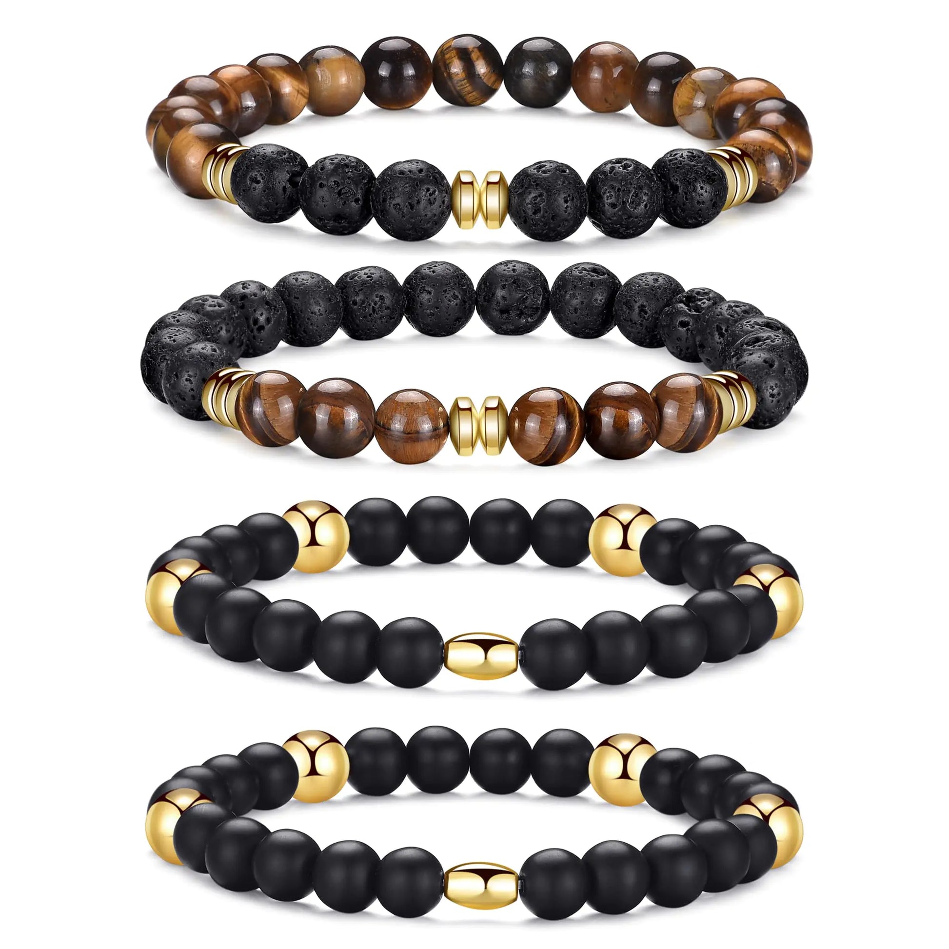 RANKEEF Tiger Eye Bracelet For Men 8MM Natural Stone Beads Bracelet Set Stretch Lava Rock Bracelets Adjustable Black Crystal Beaded Bracelet for Men Women Gifts